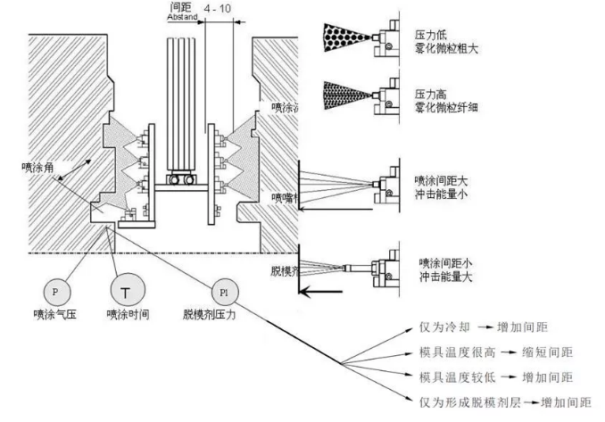 1、汽化程度:液滴大小,喷涂时间,喷涂流量,脱模剂浓度