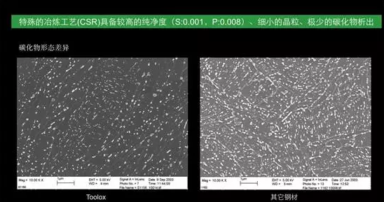 4)Toolox材料的晶粒非常细小,碳化物析出非常少;