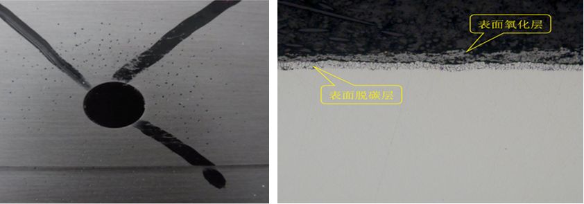 非真空热处理或者真空炉漏气造成模具表面氧化脱碳是造成抛光到3000#砂纸时发现大量“麻点”缺陷的原因之一。