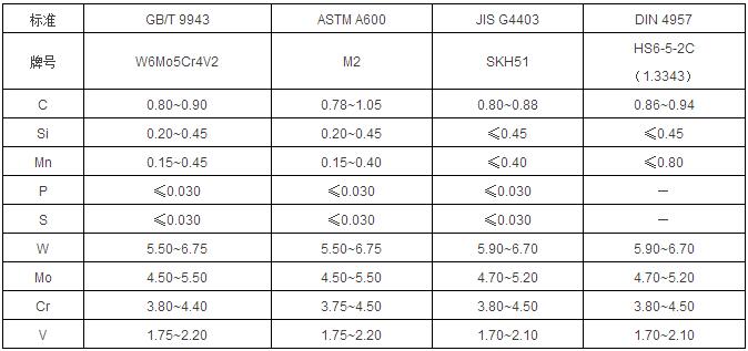 W6Mo5Cr4V2,俗称6542或W6或M2,是钨钼系通用高速钢的代表牌号。