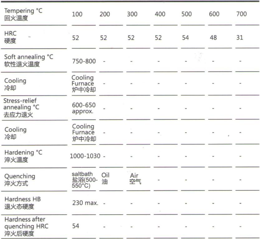 主要应用于热作钢。此外,该钢种还用于制作顶针、托料板和热缩刀柄。