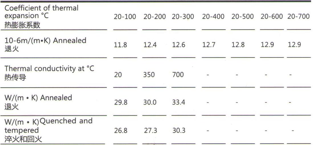 高温抗拉强度高,同时具备优良的韧性。热传导性好,不易产生热裂纹。可在限定范围内进行水冷。