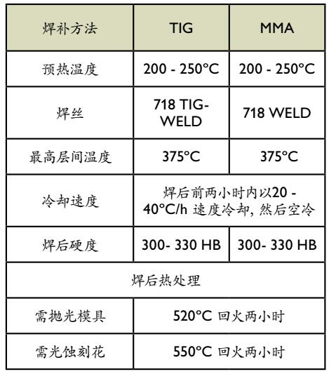 焊接之前进行合适的预处理如预热、坡口准备,选择正确的焊材和焊接工艺,可以获得满意的焊接效果。如果模具要进行抛光或光蚀刻花,必须适用相应成分的焊丝。
