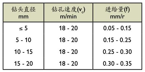 *适用于涂覆高速钢的钻头;不推荐使用未涂覆高速钢钻头