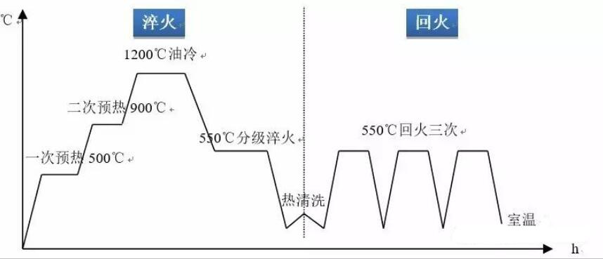 450-500℃和850-900℃下分2步预热,在所需硬度适宜的温度下奥氏体化。