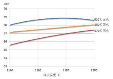 预热分两级,温度为400-500℃和850-900℃;奥氏体化温度为1140-1180℃,加热系数10-15sec/mm;580-620℃分级淬火后,再空冷至室温。