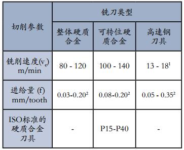 1 对高速钢涂覆端铣刀Vc:30-35m/min