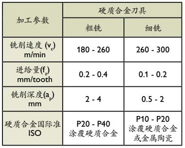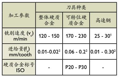 1 对于涂层HSS端面铣,Vc~45-50 m/min