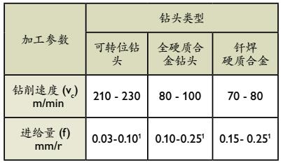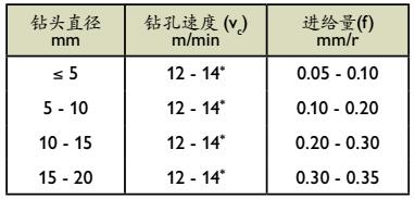 *对于镀镆HSS钻头,Vc=20-22 m/min