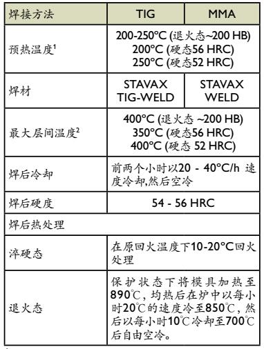 2 对模具进行多道焊时,当焊接后道焊缝时,前道焊缝的温度,称为层间温度。若超出该温度,模具就会出现变形或在焊接区域出现软区的风险。