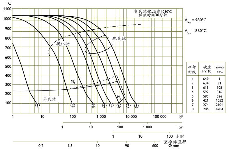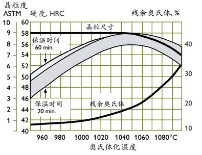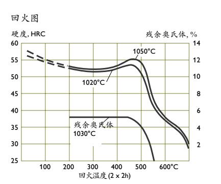 注:以上的曲线数据只对小型模具有效。淬火回火后模具可达的硬度取决于模具的尺寸